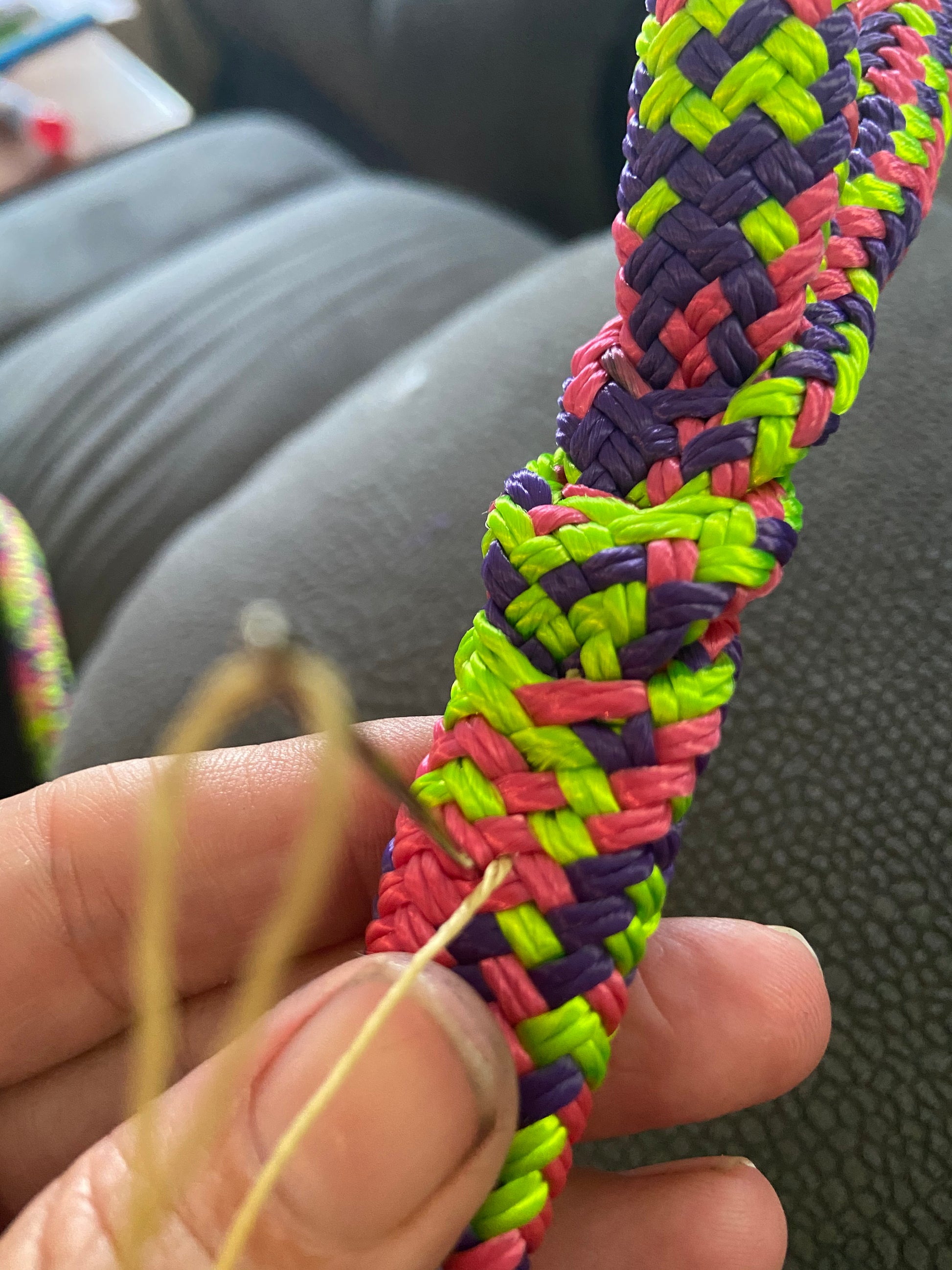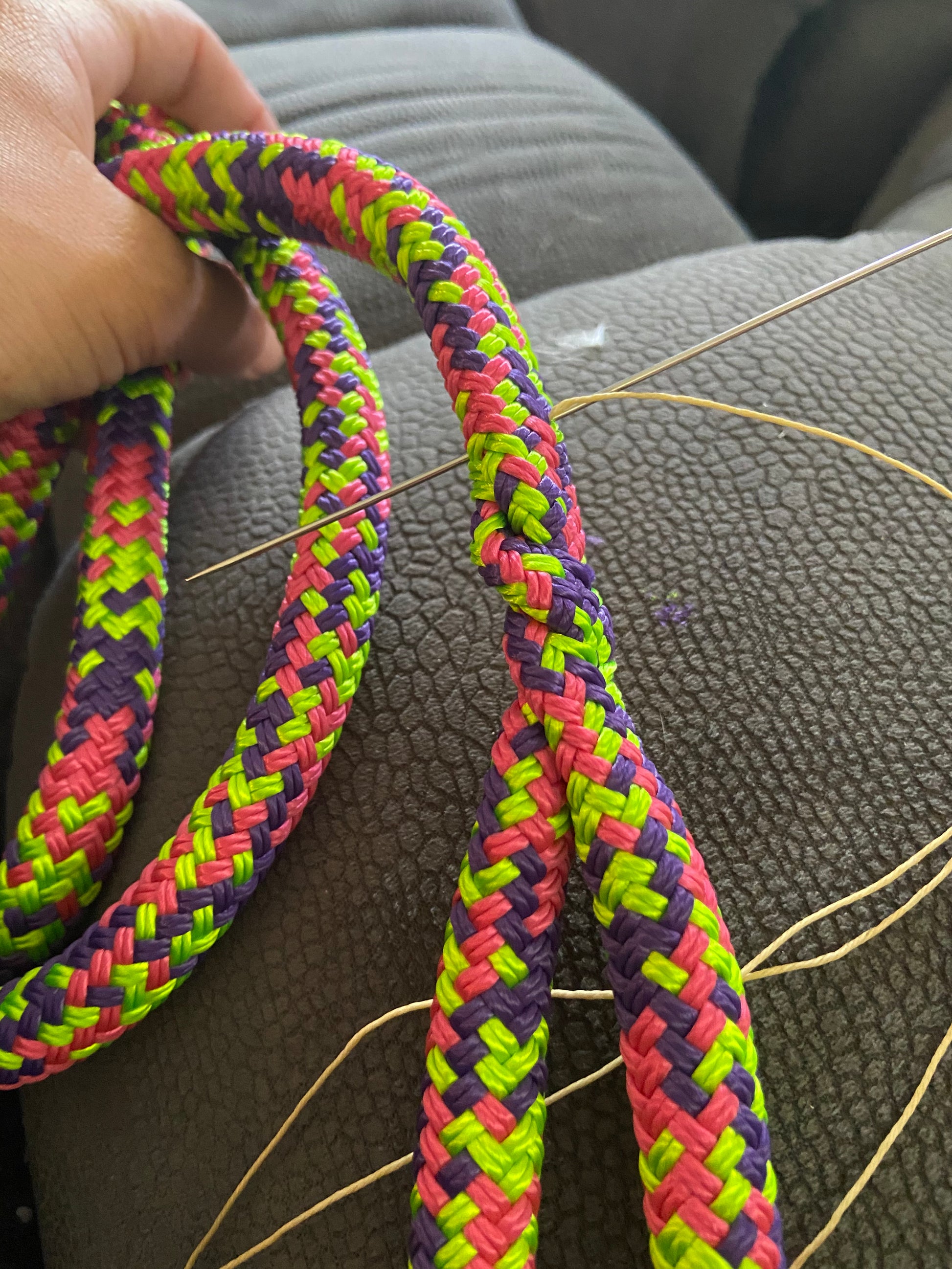All splices have been stitched for extra strength. The stitching is hidden within the weave of the rope, but trust me, it's there.