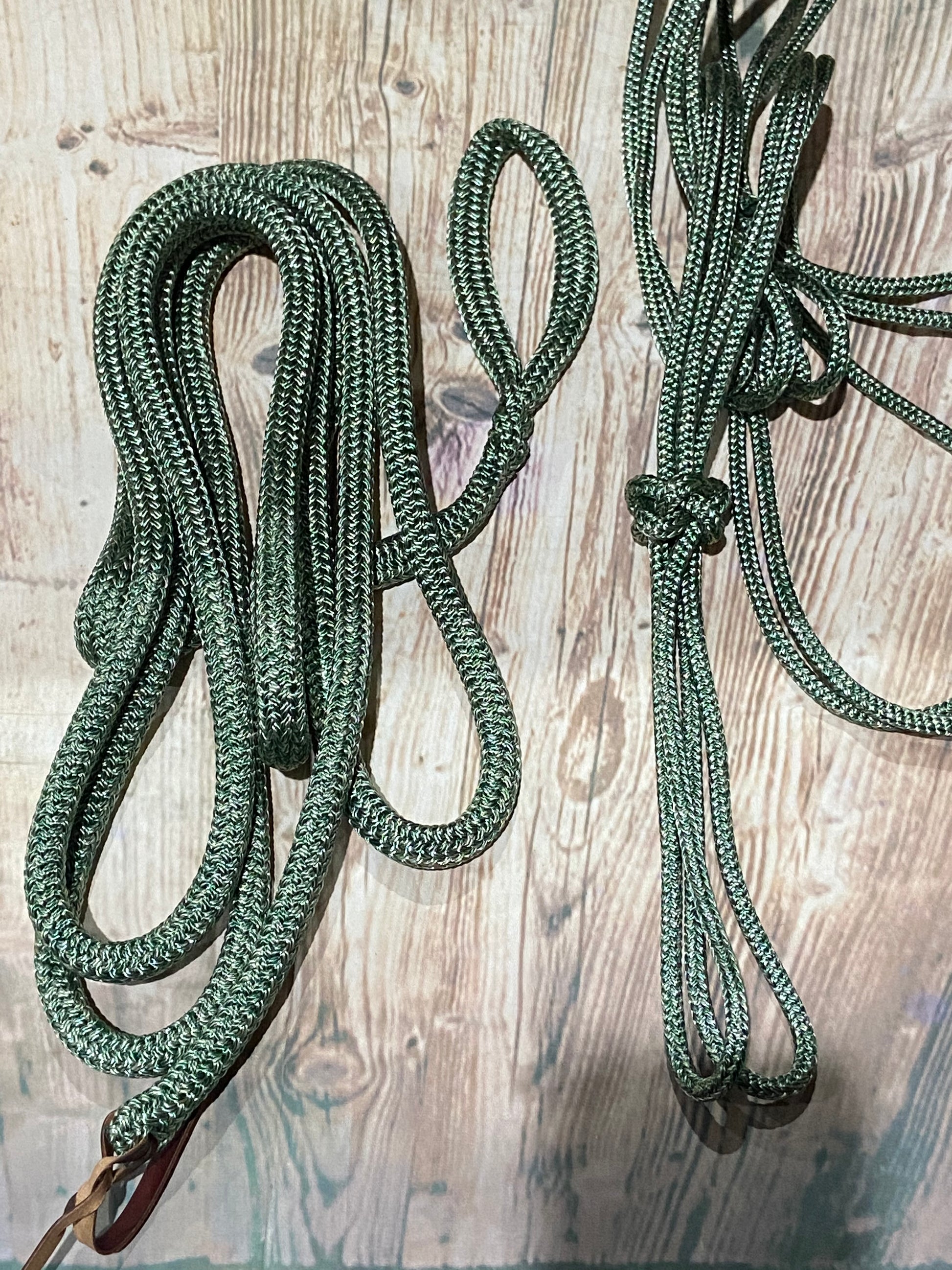 The lead ropes come with a loop at one end, to either attach directly to your halter, or too add a clip. Your choice of clip can be purchased separately. Comes with a leather popper and made from 12mm equine rope.