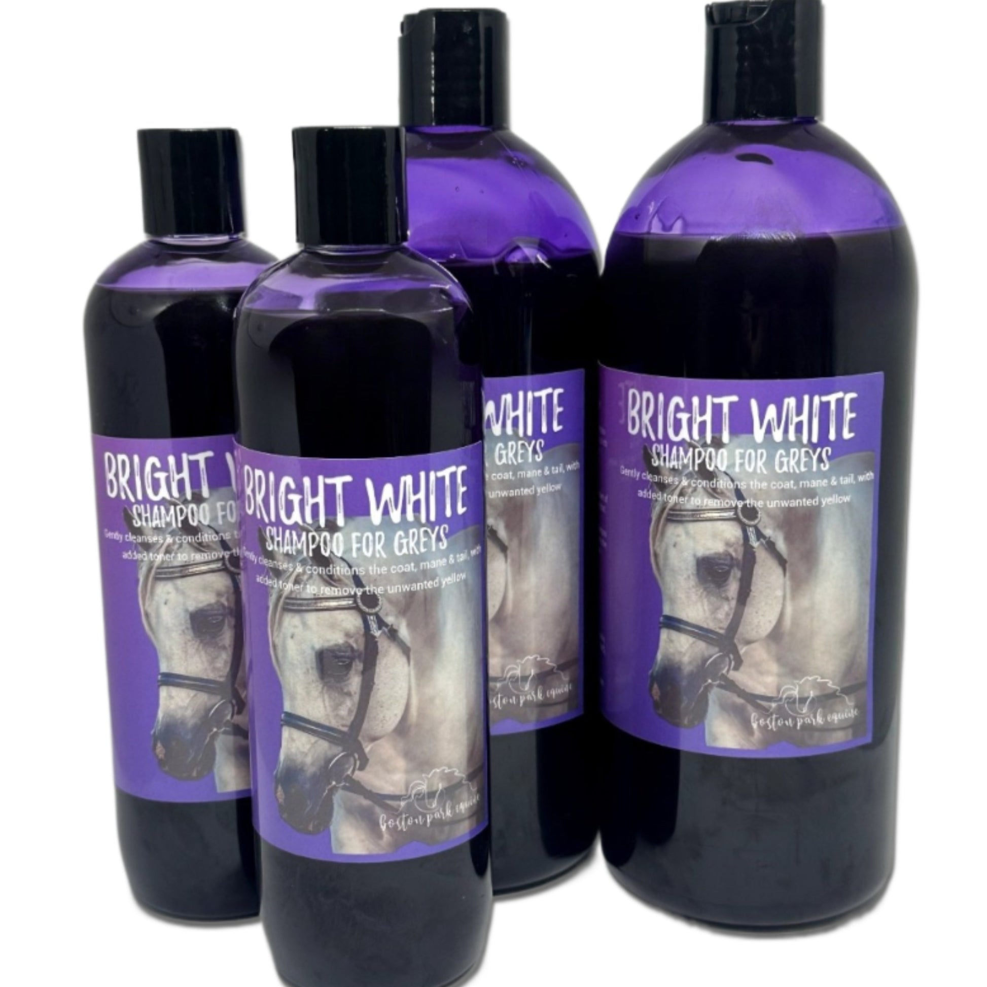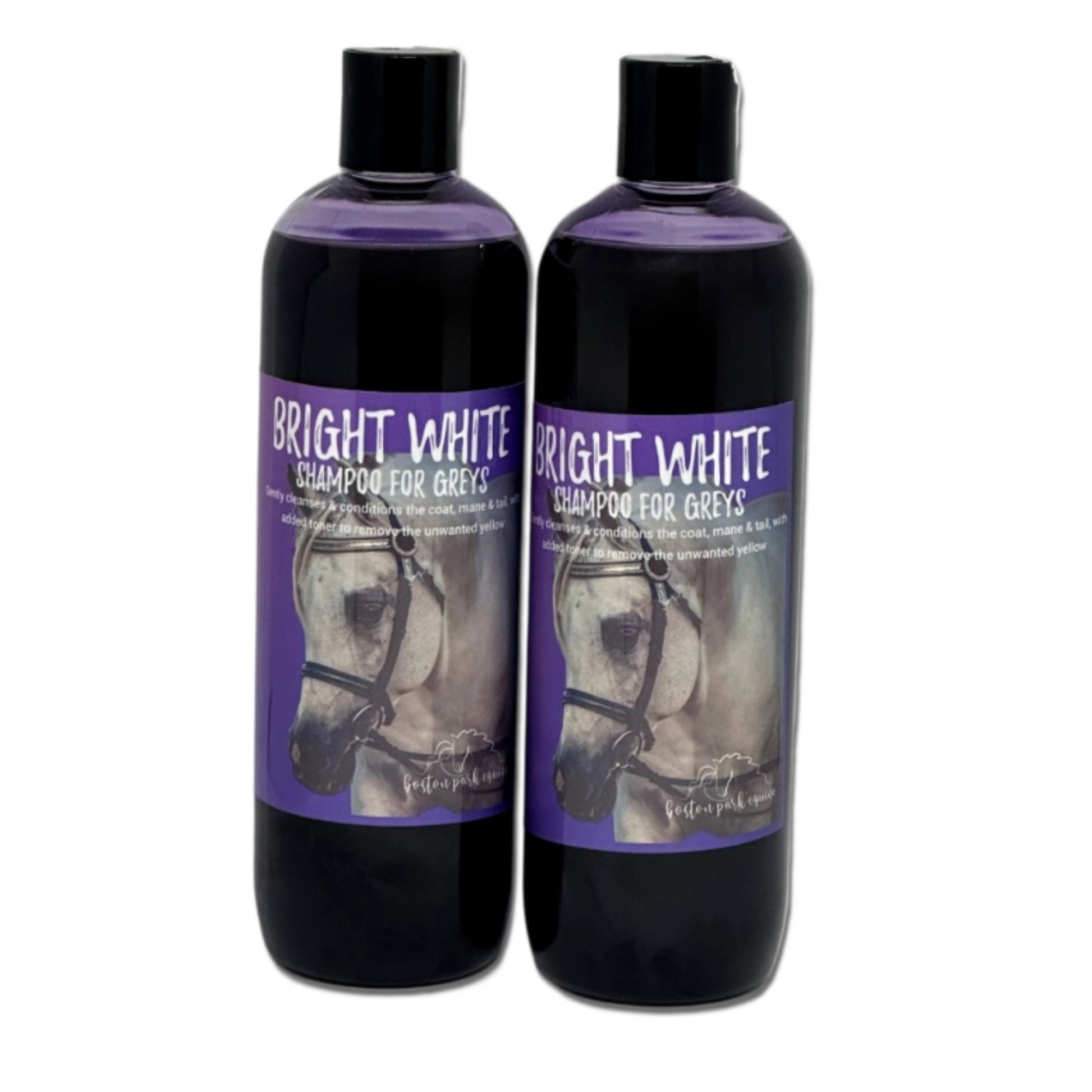 Formulated especially for grey ponies, white socks and markings, and stain-prone coats, Bright White is a rich, toning shampoo designed to tackle stubborn yellowing and dirt while being gentle on sensitive skin. It uses the same base as our Squeaky Clean Shampoo, enriched with Aloe Vera concentrate and boosted with premium Royal Purple LPD toner—a professional-grade pigment used in the human haircare industry.
