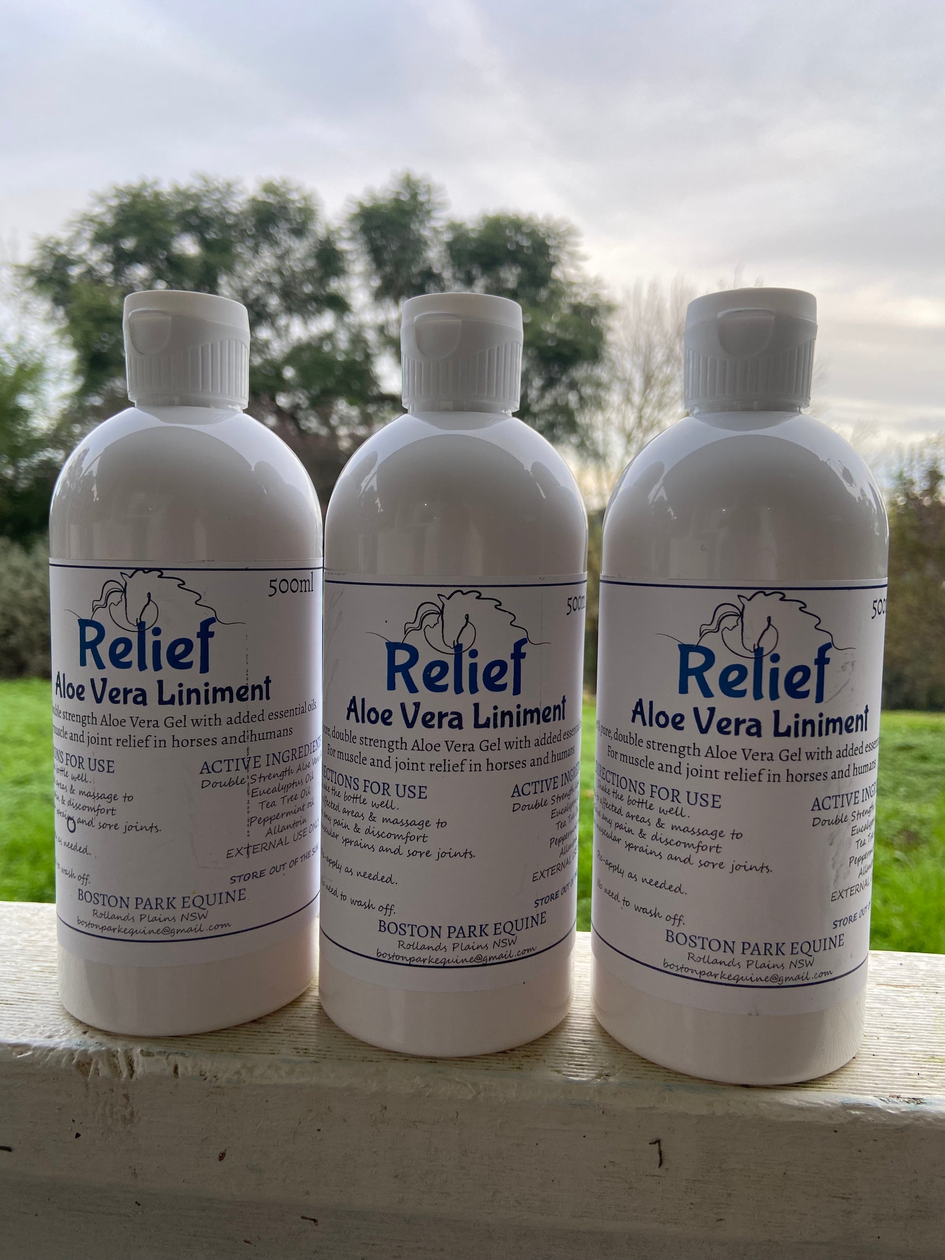 A powerful, all-natural liniment crafted with 90% double strength Aloe Vera gel, ideal for soothing muscle and joint discomfort in both horses and humans. Whether you're recovering from a long ride, training session, or just a hard day's work, this gentle yet effective blend provides cooling relief to tired, strained, or overworked areas.